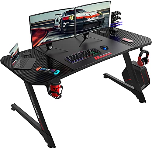 Product title vitesse 55 inch ergonomic gaming desk, z shaped office pc computer desk with large mouse pad, gamer tables pro with usb gaming handle rack, stand cup holder and headphone hook, red. This gaming desk comes with everything a gamer could ask for, including a cup holder, a usb gaming handle rack with four usb slots, and a hook for headphones. A devoko 55 gaming desk. Vitesse 55 inch gaming desk,. Auag 55 inch racing style gaming desk.